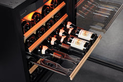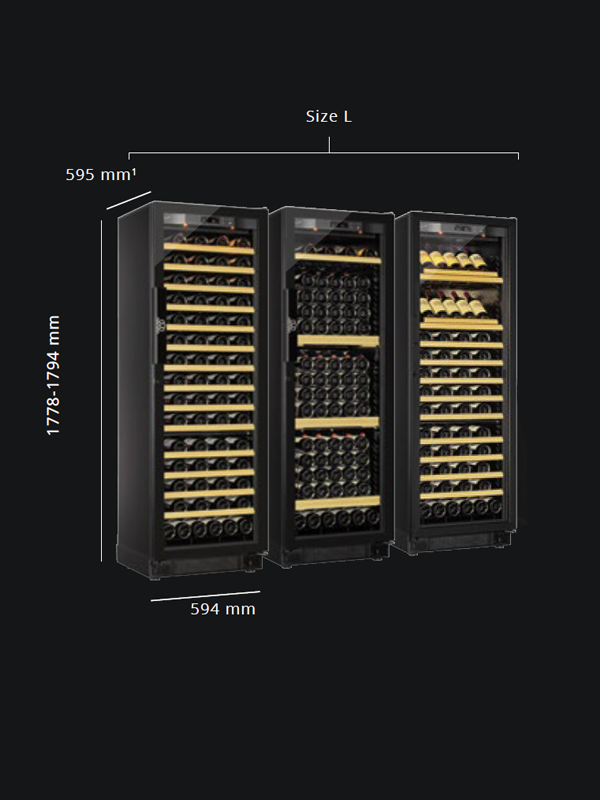 The flush-fitting wine cabinets in the Compact collection fit perfectly into kitchens since their dimensions are determined by kitchen designers. Originally designed to fit into a standard 60x60cm kitchen space. This unit is front vented, with no ventilation required at the rear, and so generates a quiet fan noise from the front grill. You cannot plinth over the front grill in any way.