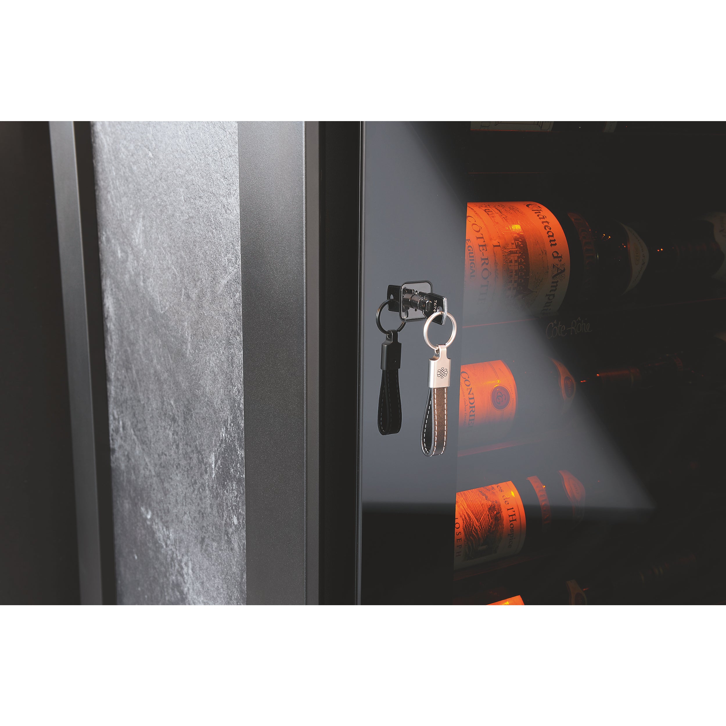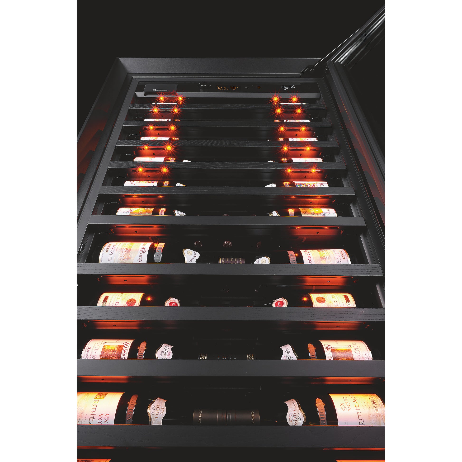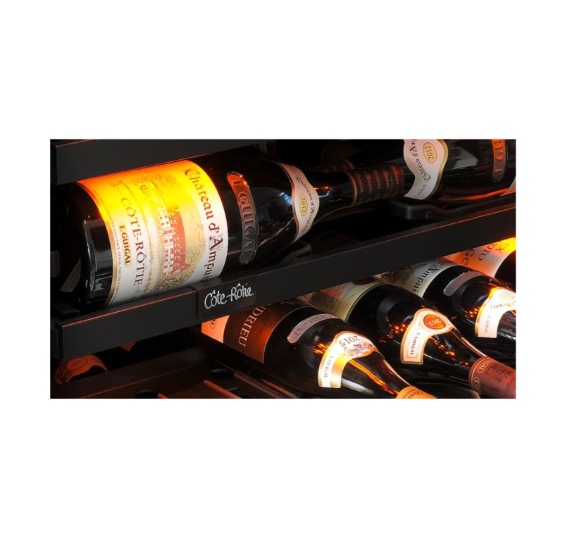 Bottle labels are subtly displayed by amber lighting fitted on all the shelves, with an ash wood front to highlight your fine wines.