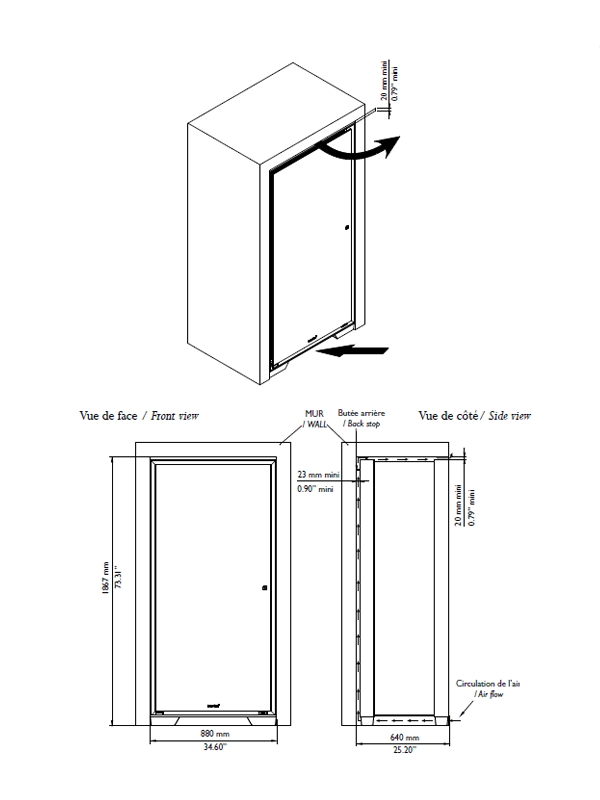 A wine cabinet which is 100% independent for perfectly maturing your Romanée Conti, Clos Vougeot, Hermitage, Château Margaux and other fine wines. How? For maturing mode - The temperature is pre-set at 12°C / 54°F, - Humidity is controlled at 70% (Hygrocontrol patented system).