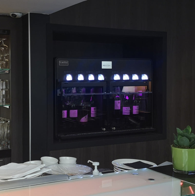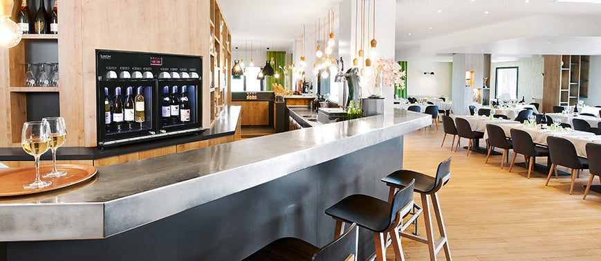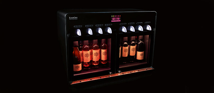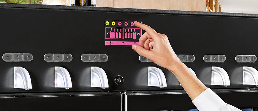 The vin au verre 8.0 wine by the glass dispenser also maintains your bottles at an ideal serving temperature thanks to its 2 compartments which can be set independently (6-15°C / 43-59°F and 9-18°C / 48-65°F).